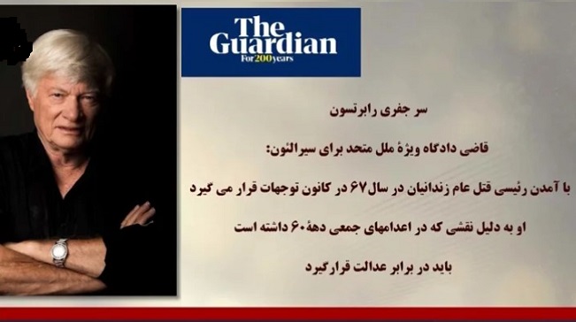 گاردین – ۹تیر۱۴۰۰- مقاله یی به قلم سر جفری رابرتسون قاضی دادگاه ویژه ملل متحد برای سیرالئون- گزارش شده که ابراهیم رئیسی در یک سخنرانی در سال۲۰۱۸ از اعدامهای جمعی بهعنوان «یکی از دستاوردهای افتخارآمیز نظام» یاد کرده است. بستگان قربانیان و جهان حق دارند بدانند که رئیسی در این دوره وحشتناک دقیقاً چه کاری انجام داده است.
