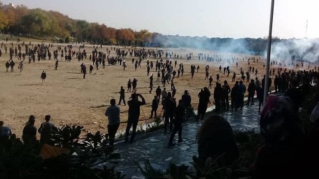 - رژیم از طرف دیگر راههای منتهی به پل خواجو را بسته و نمیگذارند کسی به سمت پل خواجو برود.اینترنت اصفهان را هم فوق العاده تضعیف کردند و مزدوران با تفنگ ساچمهای به جان مردم افتادند